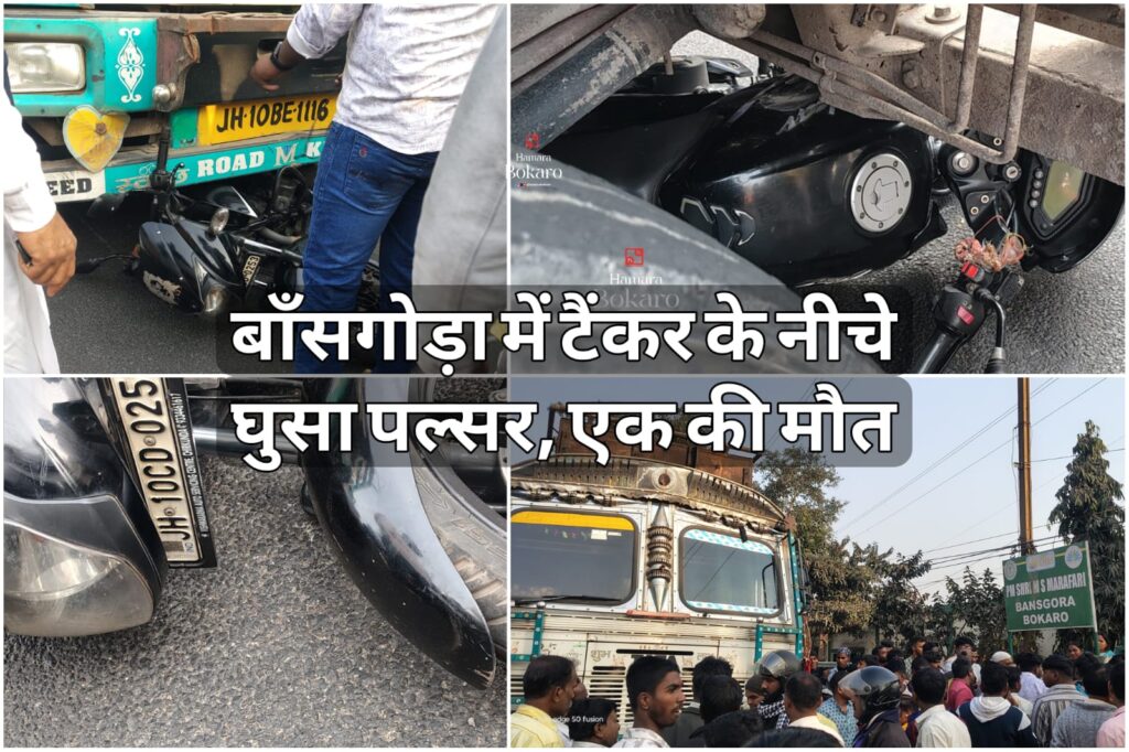 Bokaro: सीवनडीह के पास 23जनवरी के शाम 3.30 के करीब पीएम श्री राजकीयकृत मध्य विद्यालय बांसगोड़ा के सामने राष्ट्रीय राजमार्ग संख्या 23 पर सड़क दुर्घटना हुई है। जिसमें राम मंदिर की ओर से आ रहा पल्सर मोटरसाइकिल संख्या JH 10 CD 0253 सवार टैंकर संख्या JH 10 BE 1116 के चपेट में आ गया। इस घटना में दो लोगों के घायल होने की सूचना है। स्थानीय लोगों के द्वारा घायलों को अस्पताल भेजा गया है। प्राप्त जानकारी के अनुसार मंटू विश्वकर्मा के अस्पताल जाने के दौरान मौत हो गयी है।