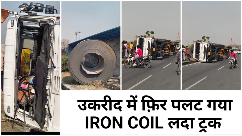 उकरीद मोड़ एक बार फिर सड़क हादसे हुई है। आज 26 मार्च दिन गुरुवार को सुबह 9 बजे के करीब सेल यार्ड से आईटीआई मोड़ की ओर जा रहा 18 चक्का ट्रक संख्या JH02BX 4502 , जिस पर भारी आयरन कॉइल लदा हुआ था, अनियंत्रित होकर पलट गया।